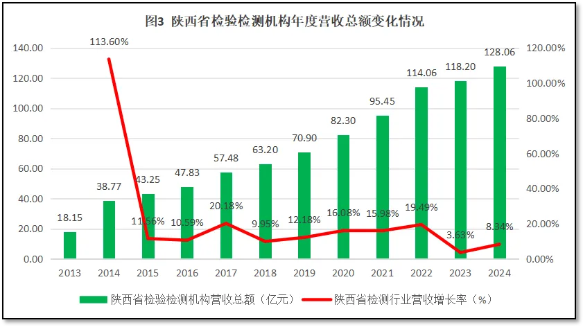 过去12年陕西省检验检测机构年度营收总额的变化,如图3所示。